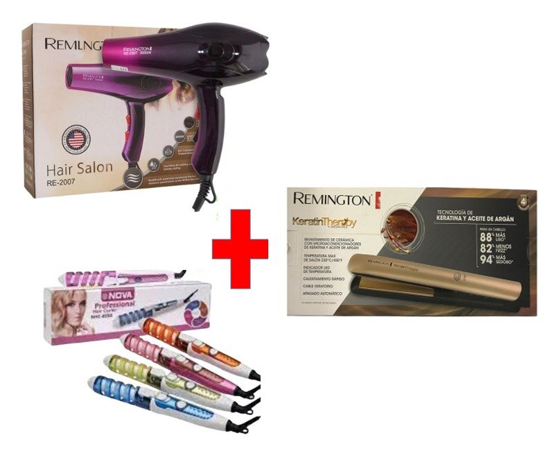 Mini rizadora + secador Remington + plancha keratina
